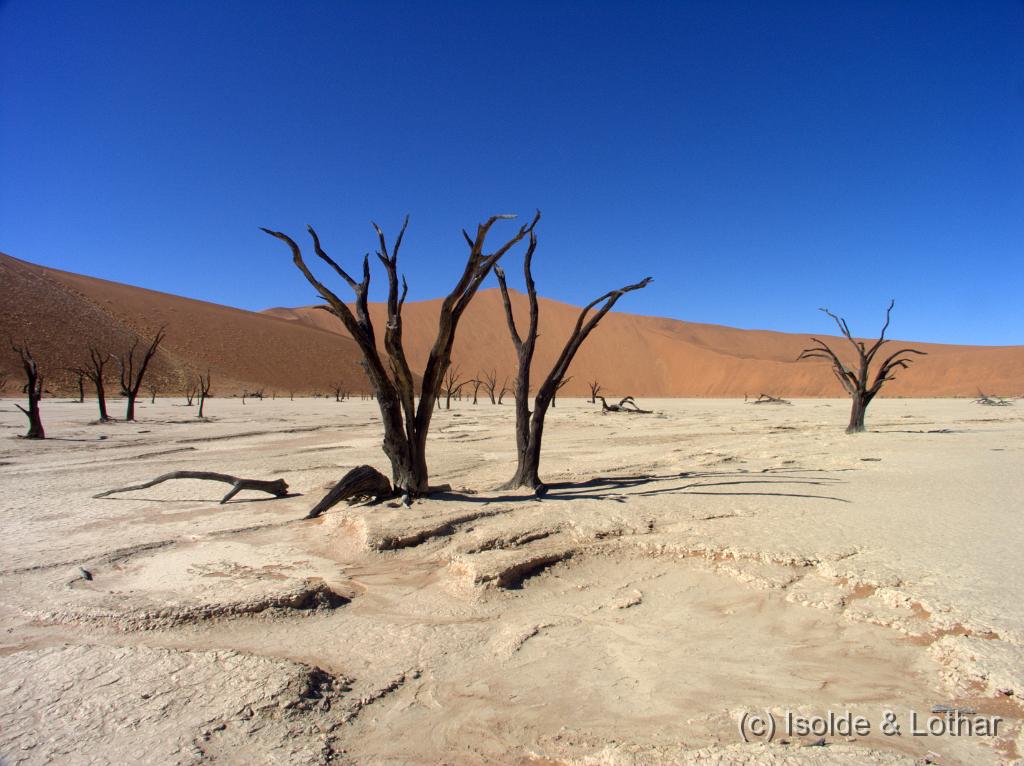 im Jahr 2009 haben wir einen Teil von Namibia bereist. Das gesamte Staatsgebiet Namibias umfasst etwa 824.292 km² und ist damit mehr als doppelt so groß wie Deutschland (357.104 km²), also viel Platz zum Reisen.  Auf je einen km² kommen ca. 2,5 Personen, in Deutschland sind es 230 Personen. Im Wesentlichen wird Namibia durch zwei Wüsten geprägt: im Westen durch die von der Kapprovinz bis weit nach Angola hinein reichende Namib und im Osten durch die Kalahari. Zwischen beiden Wüsten liegt das durchschnittlich 1.700 Meter hohe, um die Hauptstadt Windhoek herum auch das die 2.000-Meter-Marke überschreitende Binnenhochland. Einen super Mietwagenservice bekommt man bei Autovermietung Savanna. Berti, der Chef , spricht deutsch und man kann die Euros direkt auf ein deutsches Konto überweisen kein Währungsrisiko). Camping mit Dachzelt ist eine echte Alternative, da der Urlaub dann deutlich günstiger ausfällt. Wer einen Urlaub in Namibia, Südafrika, etc. plant, dem kann ich das sehr gute Forum empfehlen. Hier geht's zu den Bildern...